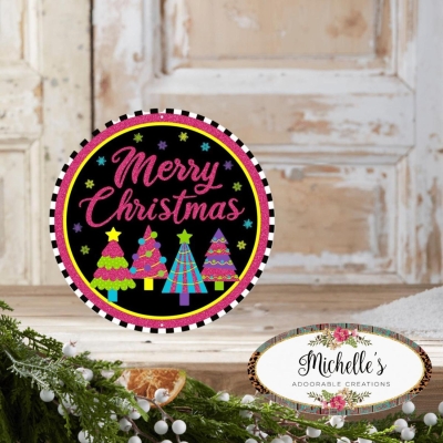 8" Metal Sign: Merry Bright Christmas