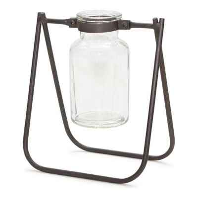 Hanging Glass Jar Vase with Metal Stand (Set of 2)
