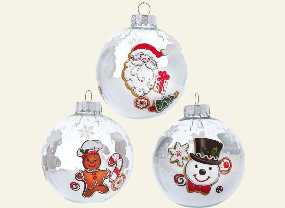 80MM Gingerbread, Snowman and Santa Glass Ball Ornaments