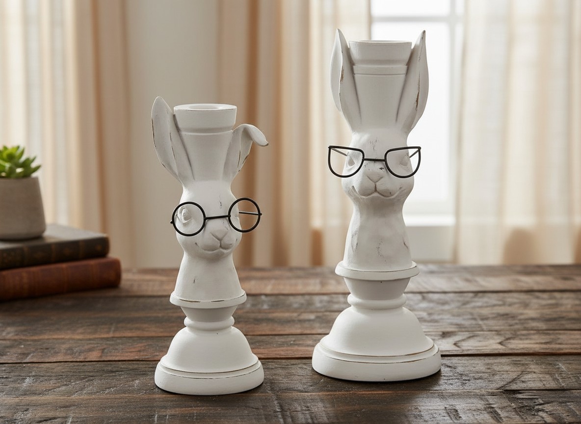 9.5in Bunnies with Glasses Candlesticks