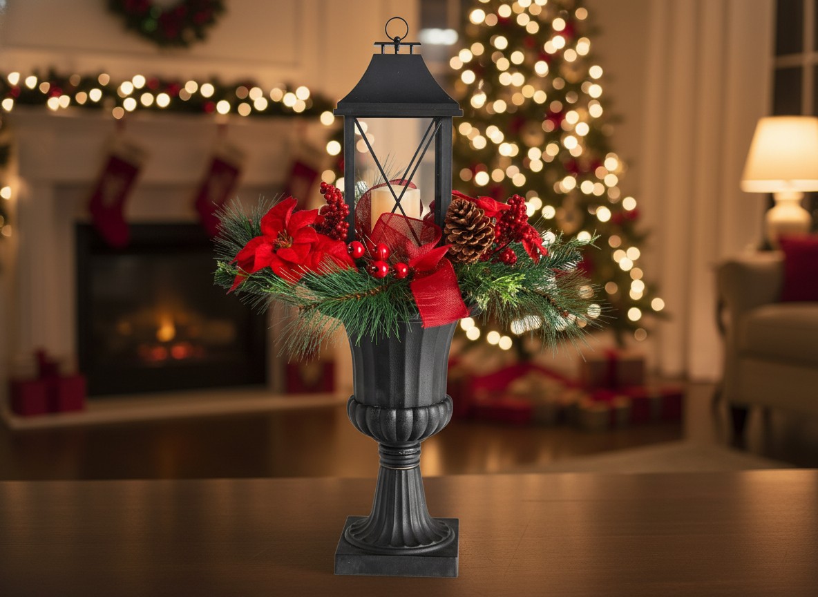 Perfect as a table centerpiece, mantel decoration, or entryway accent, it adds a touch of elegance and festive spirit to any space. The soft candlelight enhances the warm glow of your home, making it ideal for Christmas gatherings and winter decor styling.